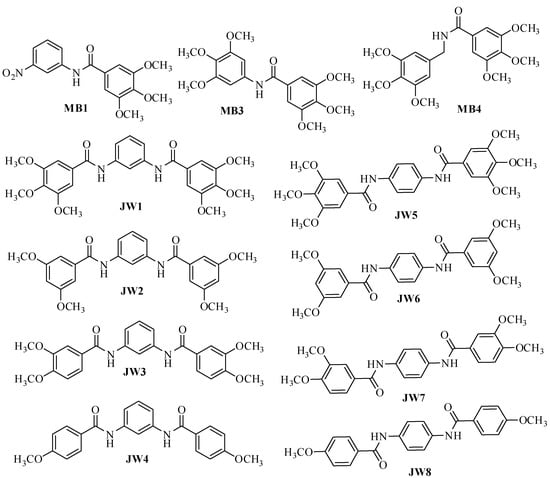 The synthesis of the new compounds JW1–JW8 and MB1, MB3, and MB4 was carried out according to the protocol presented earlier [16].