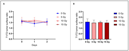 3.2.2. The T1/T2 Tumor Surface Ratio Did Not Change after Irradiation
