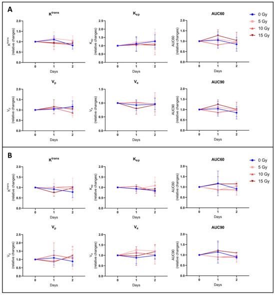 3.2.3. None of the Hemodynamic Parameters Measured by DCE-MRI Changed after Irradiation