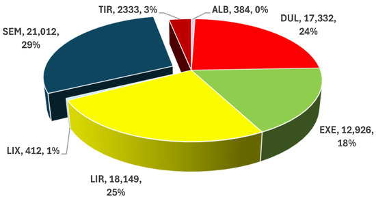 The most frequent cases have been reported in the female group that used SEM (57.7%) compared to the group of all other GLP-1 RAs (53.6%). Also, a similar frequency can be observed for LIR (59.8%). The most reported cases from EEA were for SEM (52.6%), similar to DUL (51.1%), but more frequent than the entire group of all other GLP-1 RAs. Healthcare professionals have been the ones to most often report ADRs related to SEM (61.3%). The same situation was noticed for all other GLP-1 RAs, except ALB (45.6%). Regarding the severity, the cases reported in EV as serious represented 74.2% (n = 38,215) of the total number related to all GLP-1 RAs. It can be noticed that serious cases reported for SEM (n = 12,029; 57.2%) had the lowest frequency compared to all other analogues (Table 3).