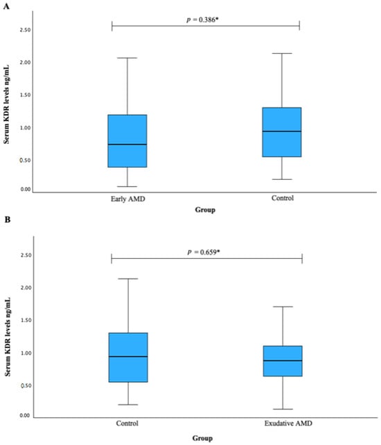 3.5. Serum KDR and CFH Associations with AMD