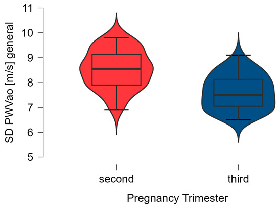 During pregnancy, the maternal cardiovascular system undergoes necessary adjustments to accommodate physiological changes. Normal pregnancy is characterized by significant increases in plasma volume and cardiac output, primarily due to arterial vasodilation. These adaptations play a crucial role in ensuring a successful pregnancy. The expansion of the aorta is linked to the arterial vasodilation that occurs during pregnancy [2]. It was also demonstrated that the physiological increase in cardiac output and circulating blood volume could secondarily increase the value of measures of arterial stiffness [3]. Research has shown that elevated arterial stiffness during pregnancy contributes to the development of conditions like pregnancy-induced hypertension and fetal growth restriction [4]. But, also in a study where 541 healthy normotensive pregnant women were analyzed, no significant changes in arterial stiffness were observed as pregnancy progressed [5].