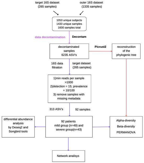 - Xu, X.; Zhang, W.; Guo, M.; Xiao, C.; Fu, Z.; Yu, S.; Jiang, L.; Wang, S.; Ling, Y.; Liu, F.; et al. Integrated analysis of gut microbiome and host immune responses in COVID-19. Front. Med. 2022, 16, 263–275. [Google Scholar] [CrossRef]