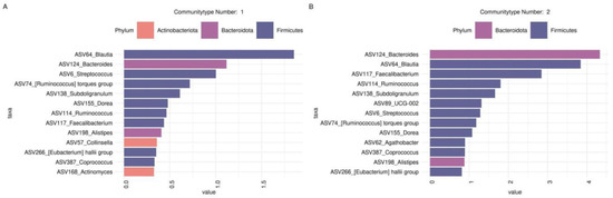 3.3. Determining Gut Biotope Community Types in Mild and Severe COVID-19 Patients