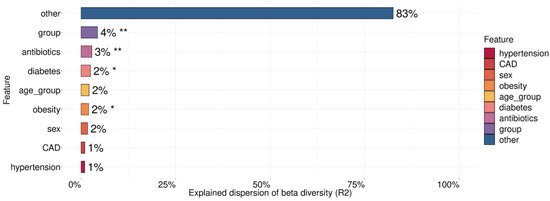 3.4. Exploring the Relationship between the Gut Microbiome of SARS-CoV-2-Infected Patients and Covariates
