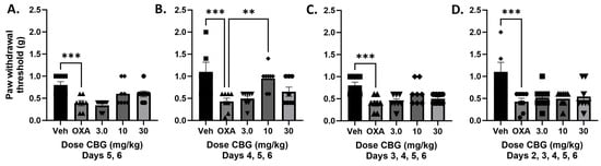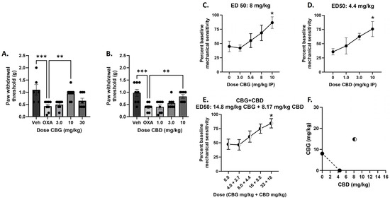 APA StyleHayduk, S. A., Hughes, A. C., Winter, R. L., Milton, M. D., & Ward, S. J. (2024). Single and Combined Effects of Cannabigerol (CBG) and Cannabidiol (CBD) in Mouse Models of Oxaliplatin-Associated Mechanical Sensitivity, Opioid Antinociception, and Naloxone-Precipitated Opioid Withdrawal. Biomedicines, 12(6), 1145. https://doi.org/10.3390/biomedicines12061145