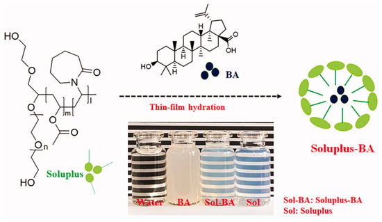 Despite advancements in the use of natural products for clinical purposes, there are still some obstacles that hinder their full potential, e.g., their limited solubility and stability when administered orally or their short duration of effectiveness. To address these concerns, drug delivery systems have emerged as a promising solution to overcome the barriers faced in the clinical application of natural products [1]. Moreover, there is a need for the development of delivery systems of BE and its new derivatives due to the characteristics of triterpenes, such as hydrophobicity, low solubility, and the resulting poor bioavailability [5,6].