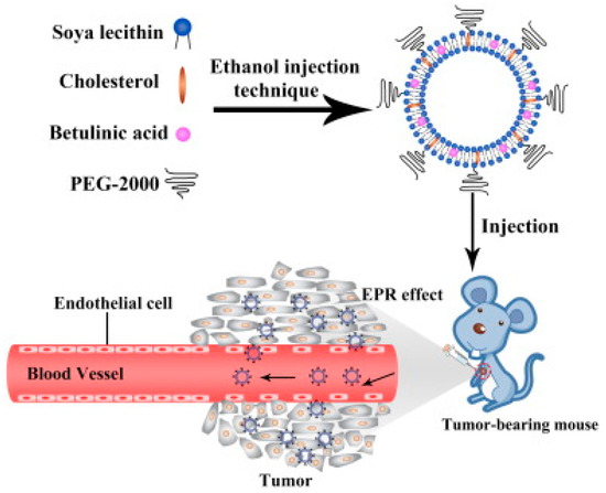- Liu, Y.; Gao, D.; Zhang, X.; Liu, Z.; Dai, K.; Ji, B.; Wang, Q.; Luo, L. Antitumor Drug Effect of Betulinic Acid Mediated by Polyethylene Glycol Modified Liposomes. Mater. Sci. Eng. C 2016, 64, 124–132. [Google Scholar] [CrossRef]
