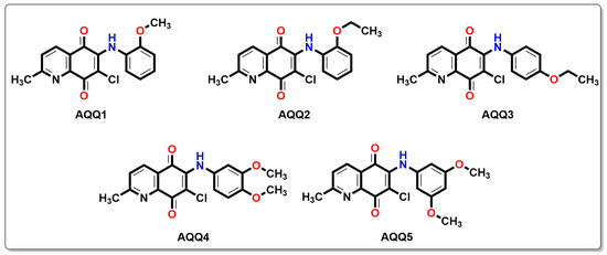 Chemical structures of alkoxy substituted aminoquinolinequinones (AQQ1–5) involved in current exploration.