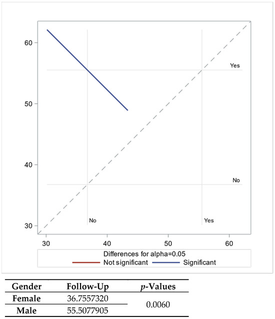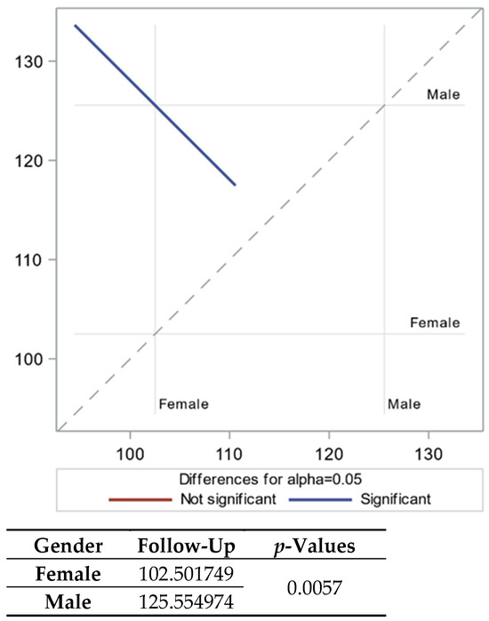 | Gender | 1 | 11,804.1 | 11,804.1 | 8.01 | 0.0057 |