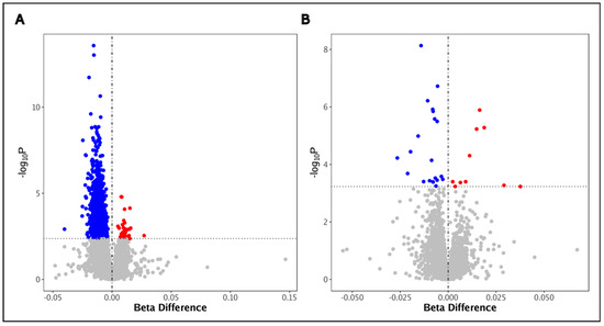 - Triche, T.J.; Weisenberger, D.J.; Van Den Berg, D.; Laird, P.W.; Siegmund, K.D. Low-Level Processing of Illumina Infinium DNA Methylation BeadArrays. Nucleic Acids Res. 2013, 41, e90. [Google Scholar] [CrossRef]