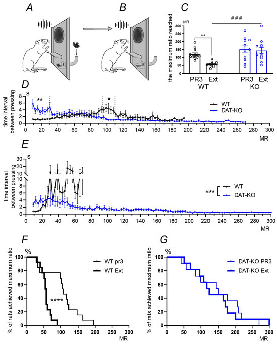 - Hironaka, N.; Ikeda, K.; Sora, I.; Uhl, G.R.; Niki, H. Food-Reinforced Operant Behavior in Dopamine Transporter Knockout Mice: Enhanced Resistance to Extinction. Ann. N. Y. Acad. Sci. 2004, 1025, 140–145. [Google Scholar] [CrossRef] [PubMed]