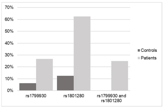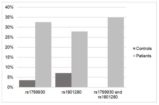 The result in the case of the controls was that of the 28 samples sequenced by WES, only one of them had the rs1799930 variant and two of them had the rs1801280 variant (Figure 3).