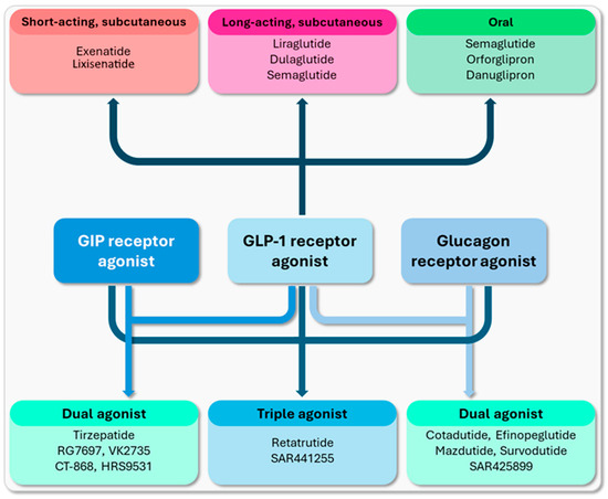 - Tschöp, M.; Nogueiras, R.; Ahrén, B. Gut hormone-based pharmacology: Novel formulations and future possibilities for metabolic disease therapy. Diabetologia 2023, 66, 1796–1808. [Google Scholar] [CrossRef]