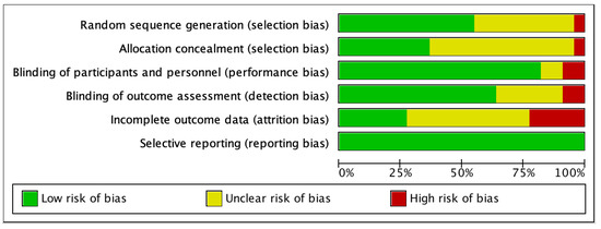 Risk of bias graph. Review authors’ assessments of each risk of bias item presented as percentages across all included studies.