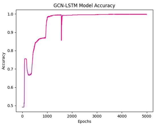 The GCN-LSTM model integrates the GCN and LSTM components by sequentially applying them. The graph representation obtained from the GCN was reshaped and passed as input to the LSTM. LSTM processes the reshaped input across a specified number of time steps, capturing temporal dependencies. The final output of LSTM represents the predictions or classifications for a given task.