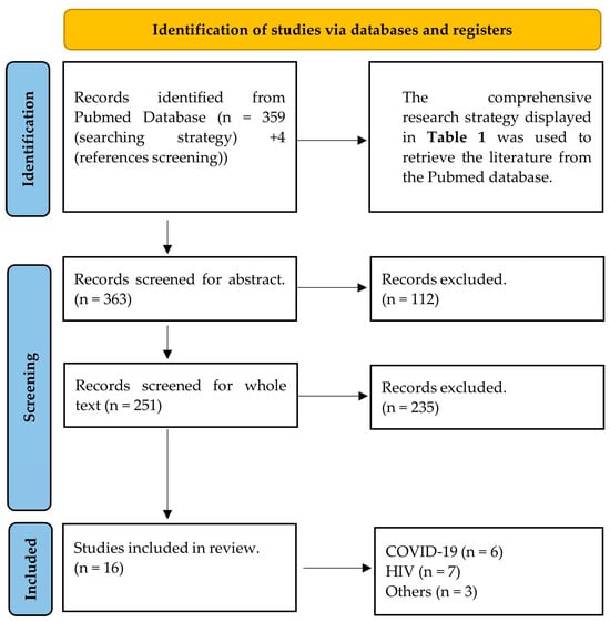 | Interest | Viral Infections | “viruses” [Mesh] OR Virus* [tiab] OR “viral particle*” [tiab] OR “enteric virus*” [tiab] OR “viral contamination*” [tiab] | #4 |