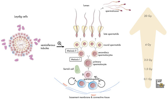 - Qu, N.; Itoh, M.; Sakabe, K. Effects of Chemotherapy and Radiotherapy on Spermatogenesis: The Role of Testicular Immunology. Int. J. Mol. Sci. 2019, 20, 957. [Google Scholar] [CrossRef] [PubMed]