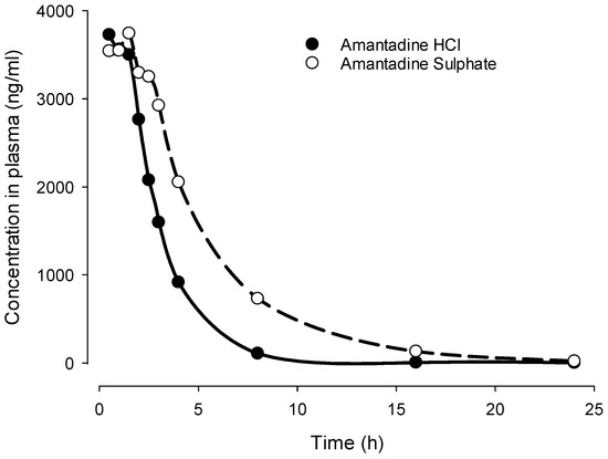 | Equimolar doses | Amantadine Sulphate | Amantadine hydrochloride | Statistical Analysis |