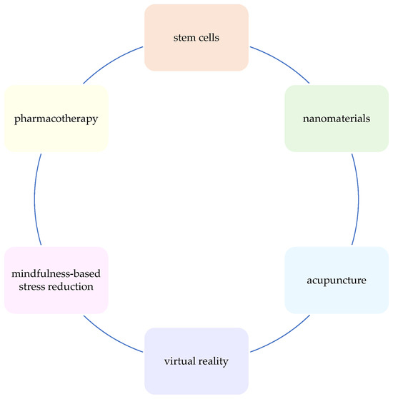Noteworthy are the numerous studies indicating the synergistic effects of combining brain stimulation techniques with other neuroregenerative and neurorehabilitation strategies [Figure 2]. Encouraging results have been obtained using the combined therapy with stem cells transplantations [116,128,129], nanomaterials such as superparamagnetic iron oxide nanoparticles (SPIONs) [155], acupuncture [156], pharmacotherapy [157,158,159], botulinum toxin [160,161], physical exercise and movement therapy [162,163,164,165,166,167,168], virtual reality [165,169,170], working memory tasks [171], mindfulness-based stress reduction [160], occupational therapy [161,172,173], music therapy [174], as well as combining TMS with tDCS [175].