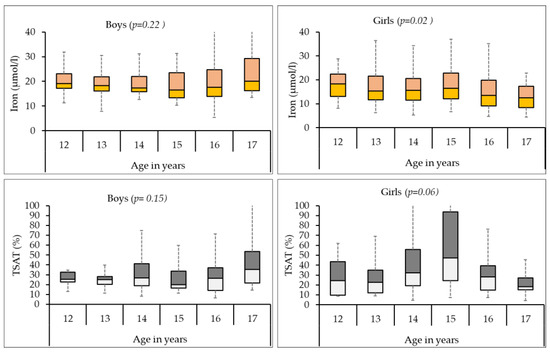 - Samson, K.L.; Fischer, J.A.; Roche, M.L. Iron status, anemia, and iron interventions and their associations with cognitive and academic performance in adolescents: A systematic review. Nutrients 2022, 14, 224. [Google Scholar] [CrossRef] [PubMed]