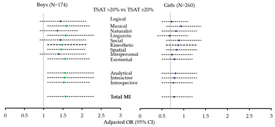 Associations between Serum Iron Indices and Self-Assessed Multiple Intelligence Scores among Adolescents in Riyadh, Saudi Arabia