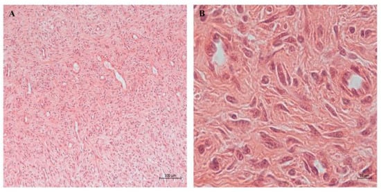 Light microscopy showing at low (A) and higher magnification (B) a human dermal granulation tissue sample characterized by several blood vessels and numerous elongated fibroblasts within a newly deposited extracellular matrix. Images are from authors’ laboratory.
