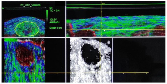 Data were collected before biological treatment (baseline), at three, six, and twelve months after the biological treatment. Isometric quadriceps strength and tendon pain were also collected. UTC scans were performed using B-mode ultrasound with a linear transducer of 7–10 MHz (SmartProbe 10L5; Terason 2000, Teratech, Rockville, MD, USA). An ultrasound probe (SmartProbe 12L5-V, Terason 2000+; Teratech) was fixed to a tracking device (UTC Tracker, UTC Imaging, Stein, The Netherlands) that automatically moves the transducer on the perpendicular axis of the tendon and records cross-images at 0.2 mm intervals [30].