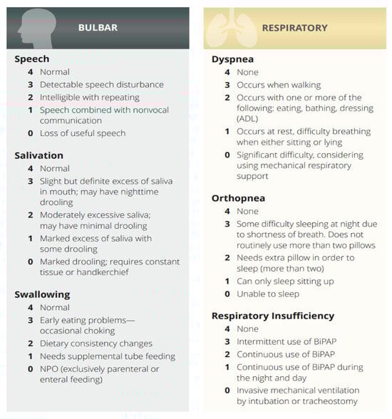 Bulbar, Respiratory category in ALS Functional Rating Scale-Revised (ALSFRS-R).