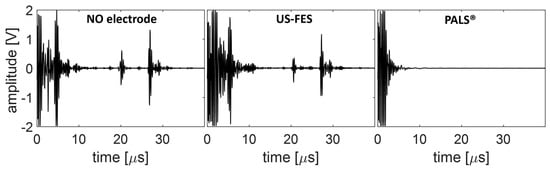 Changes in peak-to-peak voltage were measured to assess the insertion loss induced by the customized electrode (US-FES) and commercial FES electrode (PALS®) in front of a US transducer.