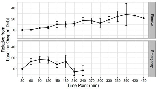 Variation in oxygen debt during elective major and emergency non-cardiac surgery.