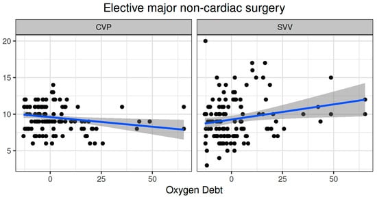 Correlation of oxygen debt with central venous pressure and stroke volume variation during elective major non-cardiac surgery. CVP, central venous pressure; SVV, stroke volume variation.