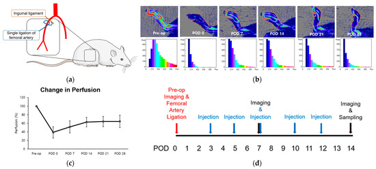 - Hellingman, A.A.; Bastiaansen, A.J.; de Vries, M.R.; Seghers, L.; Lijkwan, M.A.; Lowik, C.W.; Hamming, J.F.; Quax, P.H. Variations in surgical procedures for hind limb ischaemia mouse models result in differences in collateral formation. Eur. J. Vasc. Endovasc. Surg. 2010, 40, 796–803. [Google Scholar] [CrossRef]