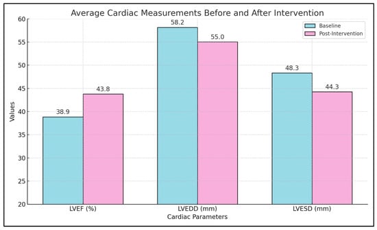| 6 | Rau et al. | [26] | Empagliflozin for 3 months | Placebo: 48% at baseline vs. 48% at 3 months. Empagliflozin: 51% at baseline vs. 51% at 3 months. | Placebo: 50 mm at baseline vs. 50 mm at 3 months. Empagliflozin: 49 mm at baseline vs. 48 mm at 3 months. | Placebo: 36 mm at baseline vs. 37 mm at 3 months. Empagliflozin: 34 mm at baseline vs. 33 mm at 3 months. | No significant changes in LVEF, LVEDD, or LVESD were observed over the course of treatment with empagliflozin compared to placebo. |