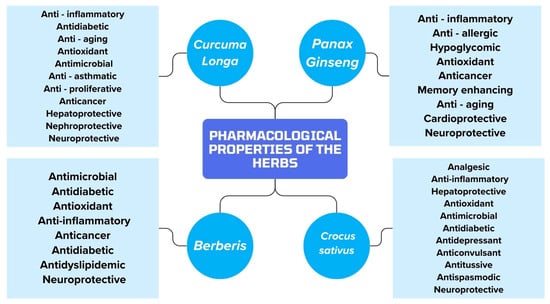 Figure 2 shows the pharmacological properties of Curcuma longa, Panax ginseng, Berberis and Crocus sativus.