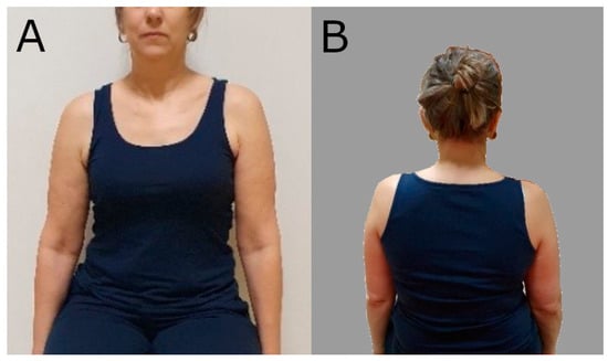 The images show lower positioning of the shoulder girdle on the right side, i.e., on the involved side. (A) from the front; (B) from behind.