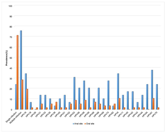 Figure 1. Distribution of the HPV genotypes detected in oral and anal sites. HPV, human papillomavirus.