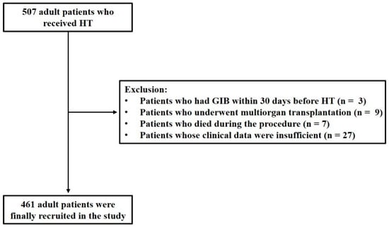Flowchart of the retrospective study. HT: heart transplantation; GIB: gastrointestinal bleeding.