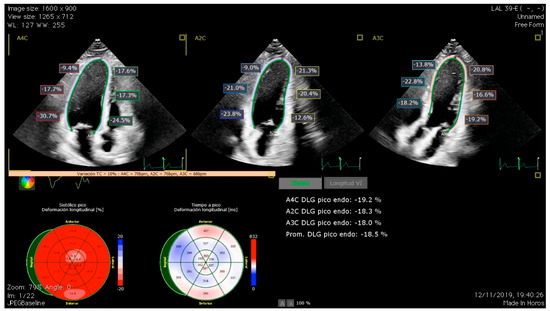The importance of GLS relies on its ability to detect subclinical dysfunction, given its high sensitivity in the detection of changes in the deformation of longitudinal myocardial fibers (Figure 1). There are multiple studies that have proven its value in the assessment of cardiotoxicity [23]. In line with this, our group recently investigated the role of GLS in detecting subclinical LVSD in a cohort of long-term childhood leukemia survivors, finding abnormal GLS values in up to 26% of the survivors [14]. Later, we evaluated LV diastolic function using conventional parameters and left atrial strain (LAS), finding an association between incremental doses of anticancer treatments and LAS impairment and displaying LAS as a potential early marker of diastolic dysfunction in these patients [24]. LAS is a relatively novel echocardiographic parameter with good sensitivity and specificity in the assessment of LV diastolic function and has shown a good correlation with invasive techniques for the assessment of filling pressures [25]. All the evidence previously exposed on the diagnosis of CTRCD revolves around the evaluation of LV function. Nevertheless, patients exposed to chemotherapy are not exempt from suffering right ventricle (RV) dysfunction. Evaluation of RV systolic function can be challenging due to its intricate geometry, and, in this aspect, RV strain has become a useful tool as it showed a better correlation with RV ejection fraction than other traditional parameters [26]. The role of RV strain measurement and the significance of RV impairment in terms of prognosis is not clearly established. Our research group reported a decrease in CCS RV strain that was inversely associated with modifiable ca and smoking habit [27]. Abnormal values of RV strain have also been reported in other cohorts of long-term CCS. However, further longitudinal studies are needed to clarify the prognostic value of this finding [28].