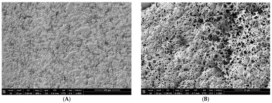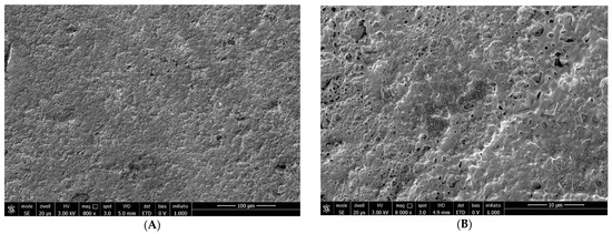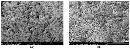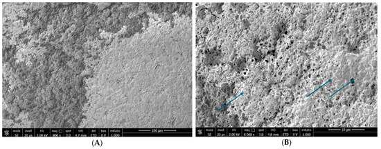 Figure 2. We can see the structure of the tear substitute at SEM at 800× magnification (A) and 8000× magnification (B) to understand how it is placed on the epithelial surface and interacts with microvilli.Figure 2. We can see the structure of the tear substitute at SEM at 800× magnification (A) and 8000× magnification (B) to understand how it is placed on the epithelial surface and interacts with microvilli.