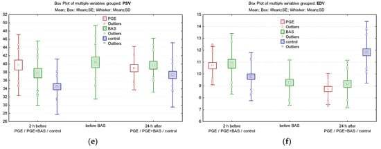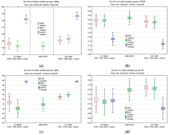 | 2 h of Life | 24 h of Life (after PGE) | p-Value | 2 h of Life | Before BAS | 24 h of Life (after BAS) | p-Value | |