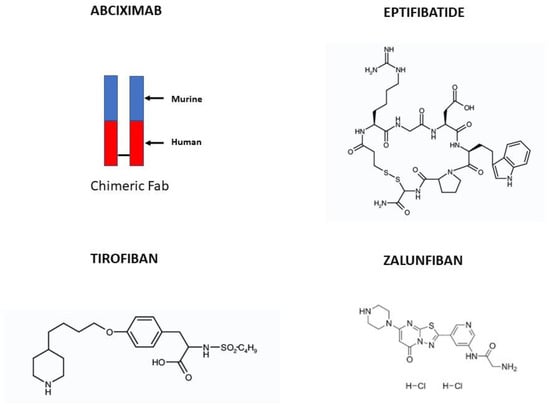 Structure of currently available intravenous GP IIb–IIIa inhibitors (abciximab, tirofiban, and eptifibatide) and the new-generation subcutaneous GP IIb–IIIa inhibitor zalunfiban.