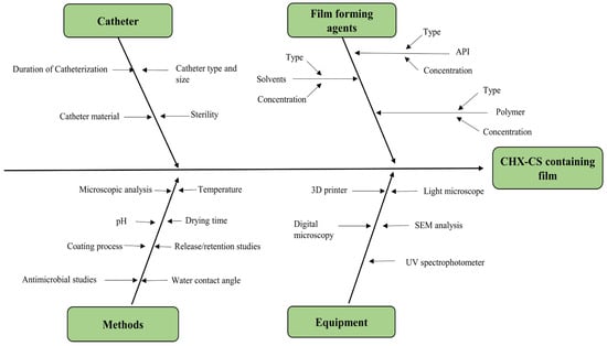 Figure 2 represents the Ishikawa sketch for the quality development process of CHX-CS coating on catheters. Moreover,