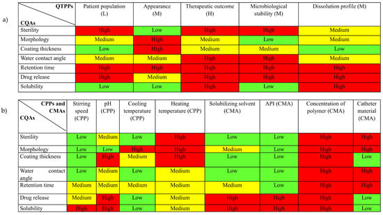 34]. After intensive evaluation and selection of risk factors, the interdependence between QTPP and CQAs, and between CPPs/CMAs and CQAs is assessed using three-level grading of Low (L), Medium (M), and High (H). For this purpose, Lean QBD software