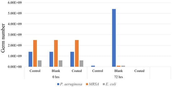 Figure 7 demonstrates that the coated catheter samples showed significant reduction in all three bacterial strains in 72 h as compared to the blank and control samples indicating the potential of the coating to mitigate the risk of UTIs. In the case of the control samples,
