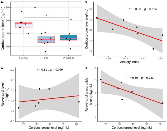 3.3. Effects of RES Treatment on Plasma CORT Concentration in PS Rats