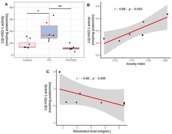 3.4. Effects of RES Treatment on Hepatic 11-HSD-1 Activity and Expression in PS Rats