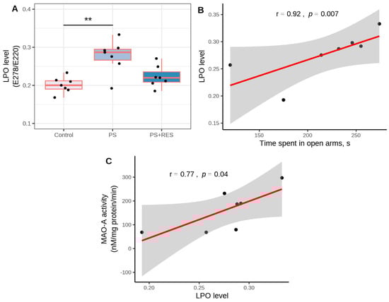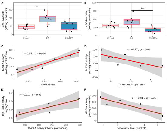 3.5. Effects of RES Treatment on MAO-A and MAO-B Activities in PS Rats