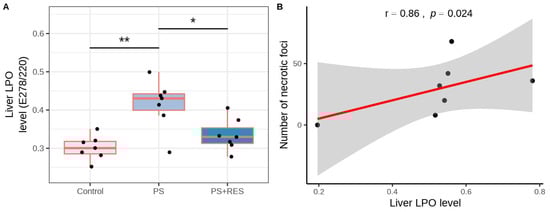 3.7. Effects of RES Treatment on Liver Histology and LPO Levels in PS Rats