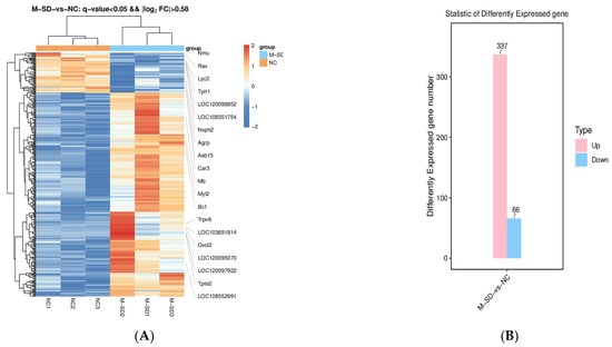 Data from the two groups were analyzed for differences using DESeq2 software version 1.12.3 (with Log2FC ≥ 1) as a screening criterion. The statistical results showed that there were 337 differential genes in the multi-factor sleep deprivation group compared with the blank control group, of which 337 genes were upregulated and 66 genes were downregulated in expression (Figure 7B).